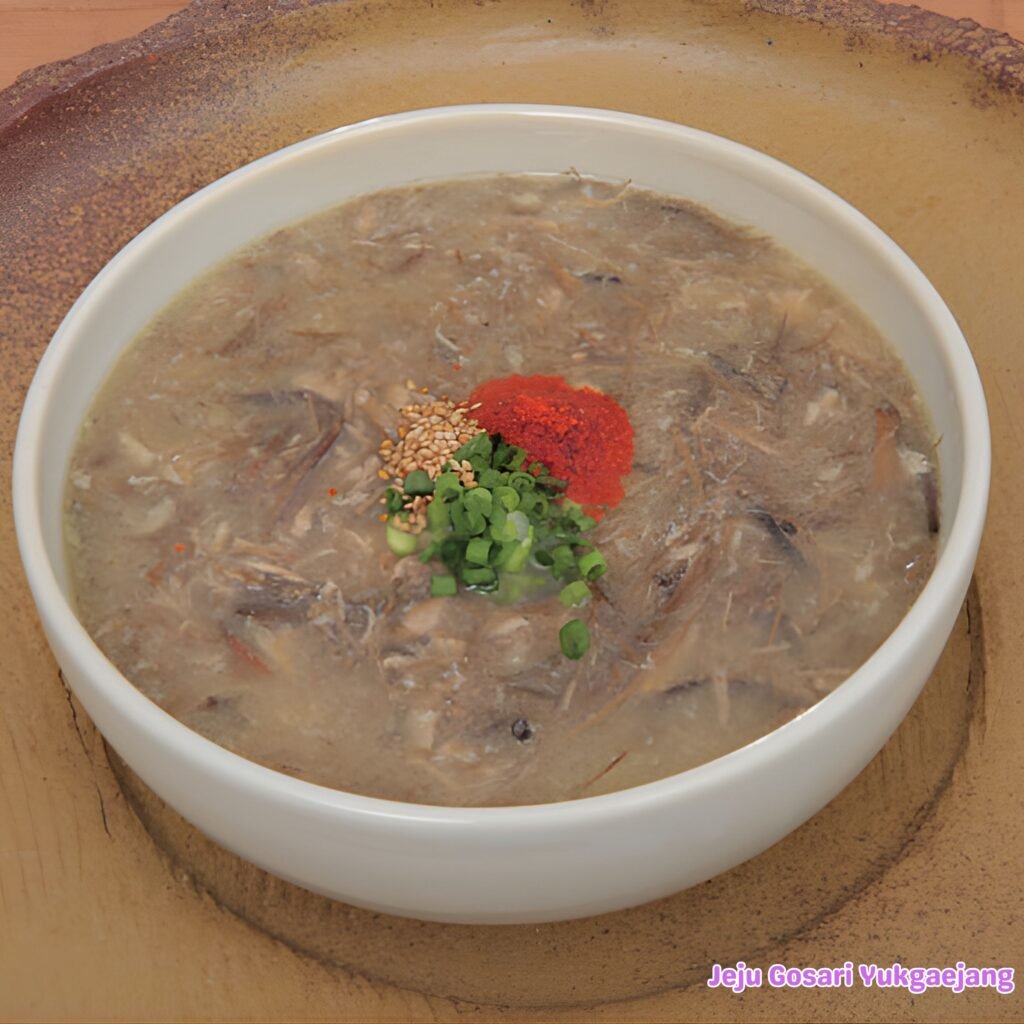 Gosari Yukgaejang (Bracken Spicy Beef Soup) – Jeju’s Special Taste Gosari yukgaejang, made by boiling bracken in beef bone broth, is a special local dish you can only taste in Jeju. Ujin Haejangguk is a famous restaurant packed with travelers willing to wait.