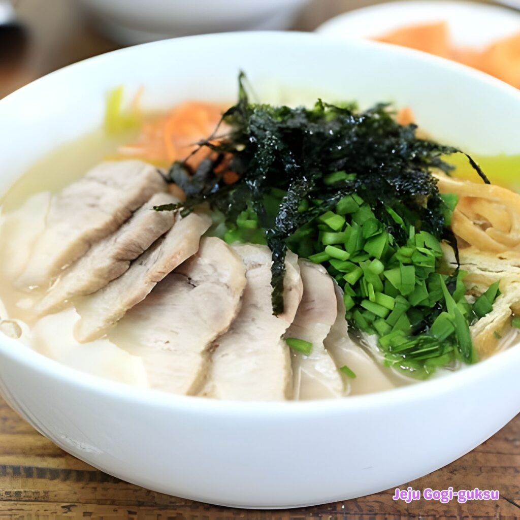 Gogi-guksu (Pork Noodle Soup) – Jeju’s Soul Food Gogi-guksu, made with broth from boiled pork bones and meat topped with boiled pork, is Jeju’s representative local dish. Try the rich broth at Jamae-guksu, Ollae-guksu, or Guksu Madang Main Branch near Jeju Airport. One bowl is hearty enough to fight off winter cold without any side dishes.