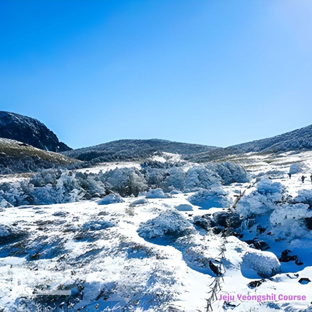The highlight of a winter trip to Jeju is undoubtedly the snow scenery of Hallasan Mountain. While Hallasan is beautiful with spring azaleas, summer green forests, and autumn foliage, its dazzling winter snow scenery is truly breathtaking.